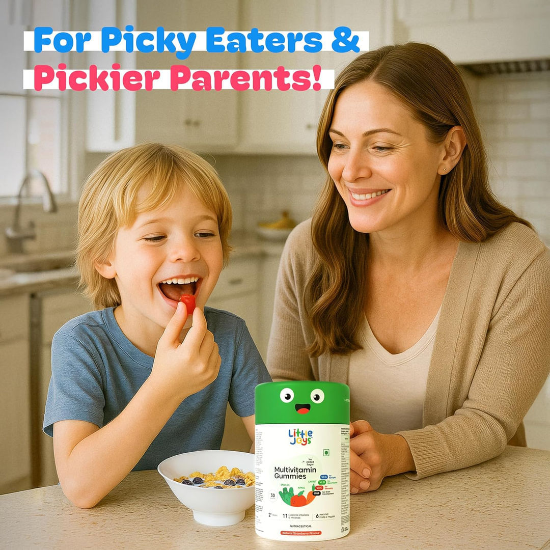 INTRODUCING LITTLE JOYS: Kids multivitamin gummies with 24+ essential vitamins, Zinc, Biotin, and DHA that support your child’s overall health—including immunity, bone strength, and digestion.