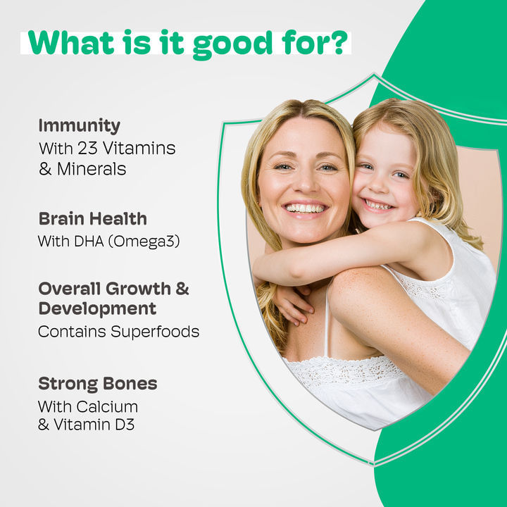 ⬆️ Height growth with plant-based protein sources like green gram, peas and brown rice proteins 🌴 Naturally sweetened with jaggery and dates